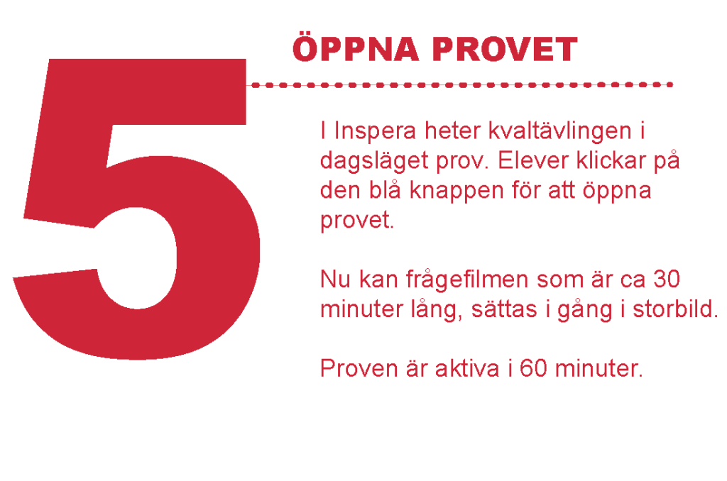 Ni väljer själva när det passar att genomföra kvaltävlingen under perioden 22/1 – 30/1. Räkna med att det tat tar ca 45 – 60 minuter att göra kvaltävlingen. Filmen med frågorna är 30 minuter lång och man kan pausa filmen vid behov. Det är inte tillåtet att diskutera eller hjälpa varandra under kvaltävlingen – eleverna svarar på frågorna individuellt. Vi har valt att inte köra i nedlåst läge då vi upptäckt att vissa datorer krånglar. Läs mer om regler på: https://teknikattan.se/regler-teknikattan/